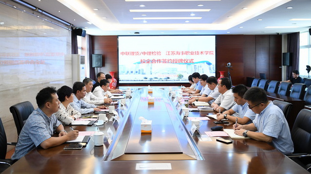 校企双方举行了简约而隆重的签约授牌仪式。学校为中理检验授牌:“江苏海事职业技术学院实习实训基地”“江苏海事职业技术学院检验鉴定技术实验室”,中理检验为学校授牌:“检验鉴定人才实践培训基地”“中理检验有限公司创新实验室”。