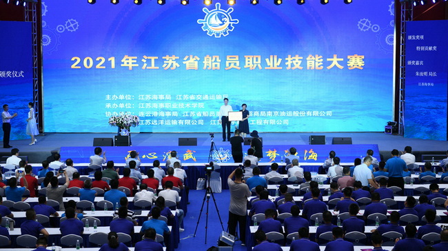 顾潮讲话。他说:2021年江苏省船员职业技能大赛是江苏省“第4届百万技能人才技能竞赛岗位练兵”活动的一项重要内容,也是优化我省全员职业发展环境,促进我省船员队伍高质量发展的创新举措。他强调,江苏高度重视高素质技术人才的培养,百万技能人才技能竞赛岗位练兵活动起步于2018年,是我省覆盖职业最好,参与规模最大、活动时间最长,社会各界最为关注的职业技能竞赛活动。本次大赛赛事规模和参赛人数省内领先,赛事项目内容丰富,行业内组织安排到位,充分体现了我省船员行业团结协作,敢于争先的良好氛围。要以举办大赛为契机,进一步营造钻研技术、爱岗敬业的良好风尚,培养更多精益求精、追求卓越的高素质青年人才,为江苏航运大省、航运强省建设贡献更多的基本力量。