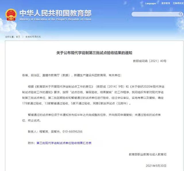 近日,教育部印发《关于公布现代学徒制第三批试点验收结果的通知》(教职成司函〔2021〕40号),我校作为国家级现代学徒制第三批试点顺利通过教育部验收。