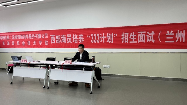 2021年12月20日,我校联合(招商轮船)深圳海顺海事服务有限公司赴兰州进行招生面试,首批面试对象为船舶电子电气员学员,甘肃省人社厅史永斌处长出席面试会议并对学员进行政策宣贯,首批面试学员共计32人。