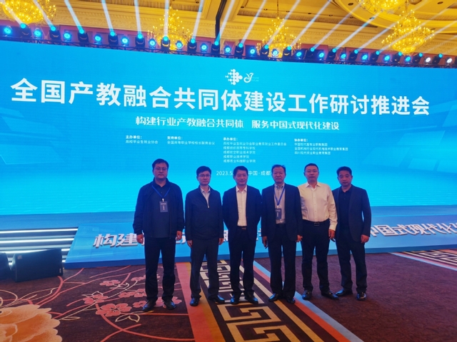 5月9-10日,以“构建行业产教融合共同体服务中国式现代化建设”为主题,由高校毕业生就业协会主办的“全国产教融合共同体建设工作研讨推进会”在成都召开。会议旨在深入贯彻党的二十大精神和习近平总书记有关重要指示批示精神,落实中办、国办《关于深化现代职业教育体系建设改革的意见》,优化职业教育类型定位,立足新阶段,实施新战略,扎实推进行业产教融合共同体建设。教育部职业教育与成人教育司副司长林宇,高校毕业生就业协会会长、北京语言大学原党委书记王路江,四川省教育厅副厅长石静,教育部职业教育与成人教育司院校发展处处长任占营以及部分地方教育行政部门、职教集团、职业院校和行业企业等代表1000余人参加,会议举行了全国产教融合共同体公共信息服务平台开通仪式,并进行了专题报告、政行企校面对面、产教融合共同体主题对话等活动,校长万健应邀请出席。