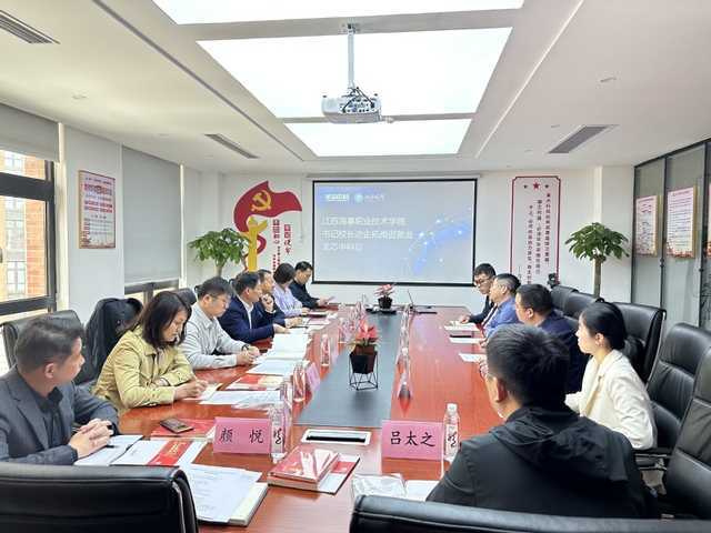 调研中,万健向企业介绍了江苏海院的发展历程、专业建设、人才培养等情况。他表示,学校希望通过落实“访企拓岗”专项活动,了解企业人才需求,寻找合作切入点,做到人才培养前置,将企业需求纳入学科人才培养方案,通过深化合作,增加岗位数量,促进毕业生更充分更高质量就业。