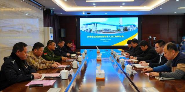 1月9日上午,南京市鼓楼区人武部陈亚彪部长、葛洪海副部长,南京市鼓楼区公安分局甄现凯副局长,南京市鼓楼区公安分局人口大队贝学珉副大队长、茅善平四级警长一行来我校调研大学生征兵工作。我校副校长郑军接待了陈亚彪部长一行,人武部、学工处负责人参加了调研座谈会。座谈会由士官与军事教育学院院长袁周主持。