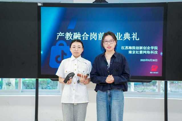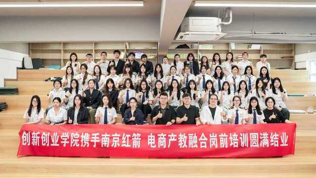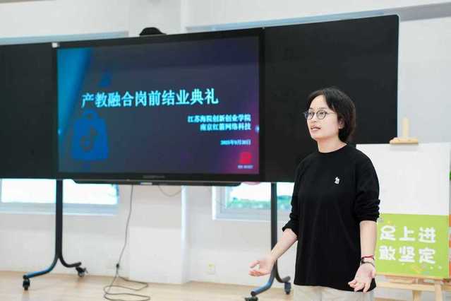 2025年9月30日,创新创业学院与南京知名跨境新媒体企业——南京红箭网络科技有限公司联合推动的跨境电商产教融合实践项目,在创新创业创客方舟一楼路演大厅举行阶段性结业典礼。典礼由企业班主任吴秋姝老师主持。南京红箭网络科技有限公司总经理沈澍、运营总监邵海宏、创新创业学院副院长杭俊、电子商务中心主任黄忆静出席了结业典礼。