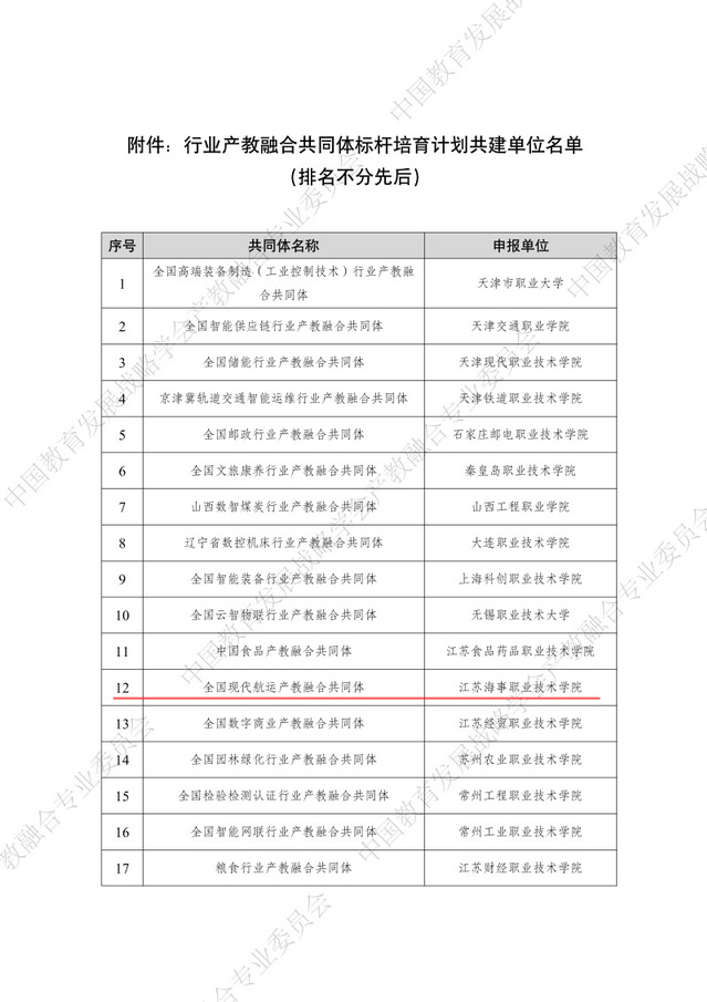近日,中国教育发展战略学会公布了行业产教融合共同体标杆培育计划共建单位名单,我校申报的全国现代航运产教融合共同体成功入选,成为全国50个共建单位之一。